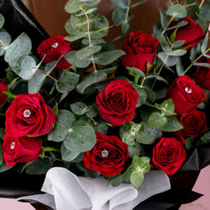 Convey your deepest emotions with this luxurious bouquet of 12 stunning red roses.