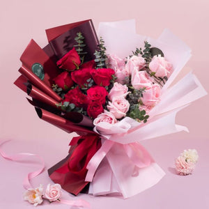 Express your love in the most beautiful way with the Half Red, Half Pink Heart Bouquet, a timeless romantic gesture.